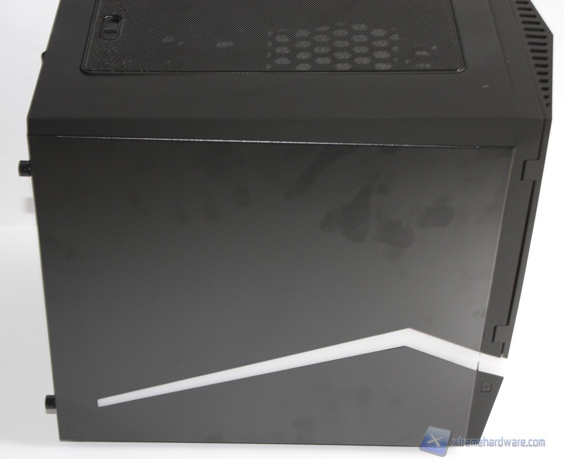 In questo paragrafo analizzeremo velocemente il montaggio di un sistema Intel ed il conseguente cablaggio posteriore ed anteriore. Anche per gli utenti poco esperti la procedura è molto facile: per prima cosa dovrete montare l’alimentatore alla base del cabinet, facendo attenzione a passare il connettore di alimentazione della scheda madre attraverso il retro del case insieme anche a quello ausiliario EPS ad 8pin. Nel caso il nostro alimentatore non abbia cavi abbastanza lunghi possiamo optare sempre per delle prolunghe. Fatto questo, consigliamo l’installazione della scheda madre con relativo dissipatore montato e successivamente della scheda video. Successivamente installiamo il plate con gli SSD o l’Hard Disk montato e provvediamo ad avvitare tale plate ai fori posti in alto ed in basso della parte laterale. Sarà quindi necessario montare il lettore ottico/fan controller, qualora presente: dovrete togliere una mascherina frontale dall’interno.